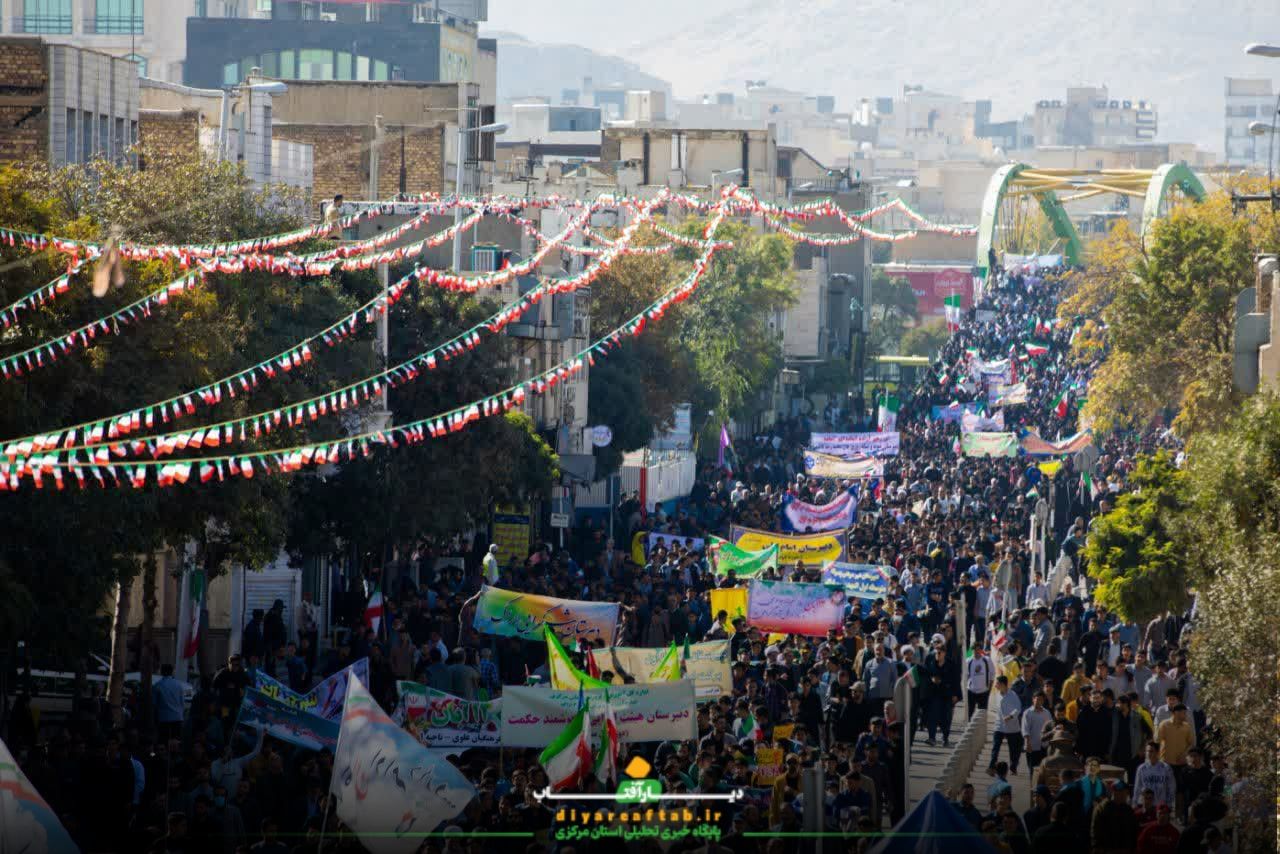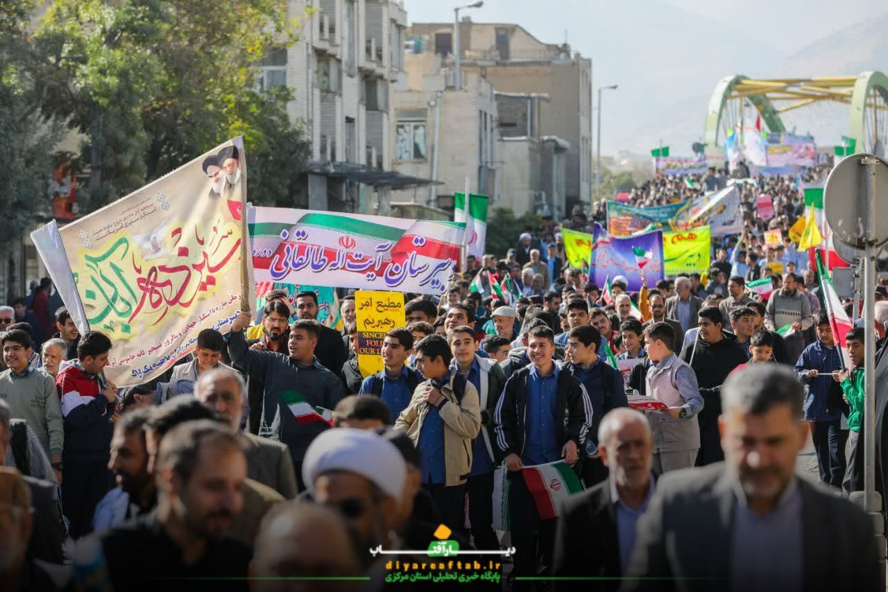 ۱۳ آبان امسال، بار دیگر صحنه اتحاد، بصیرت و حضور آگاهانه مردم استان مرکزی در پاسداری از عزت ملی بود؛ حضوری که چشم دشمنان را خیره کرده و پیام روشنی برای جهانیان داشت، ملت ایران هرگز زیر بار سلطه نخواهد رفت و استوار در مسیر مقاومت و استقلال گام برمی‌دارد.