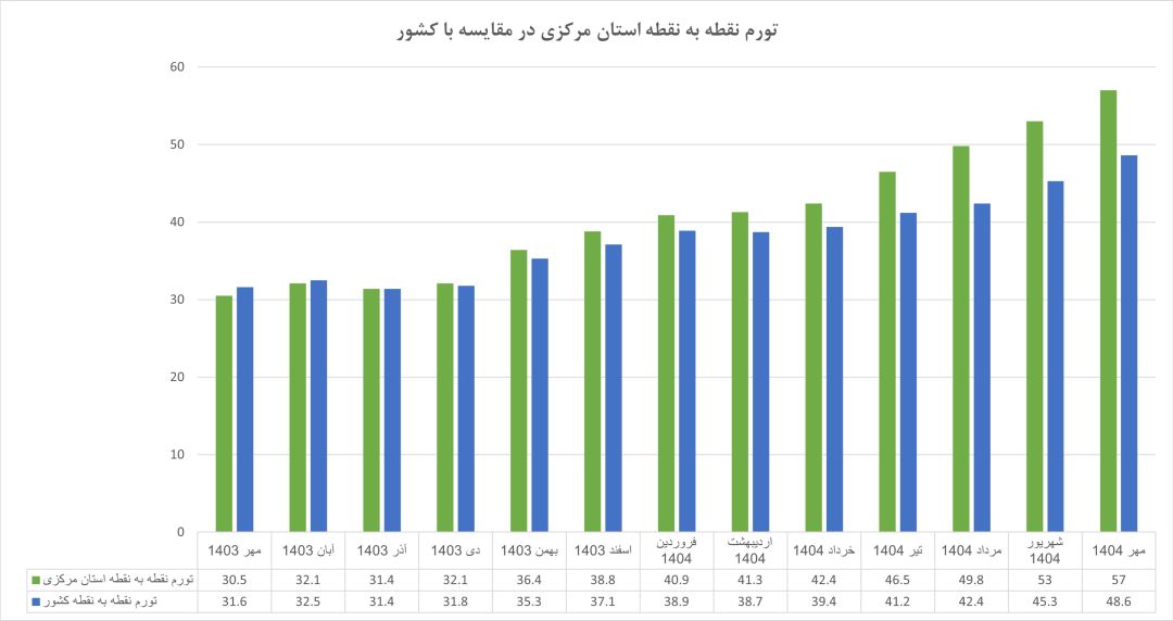 از مرداد ۱۴۰۴ تاکنون، استان مرکزی صدرنشین مطلق تورم نقطه به نقطه کشور است.