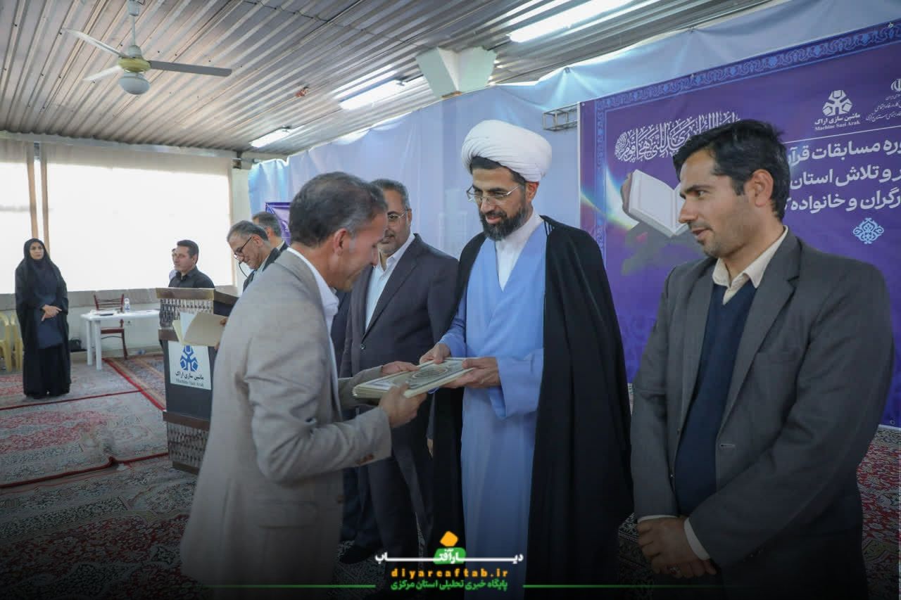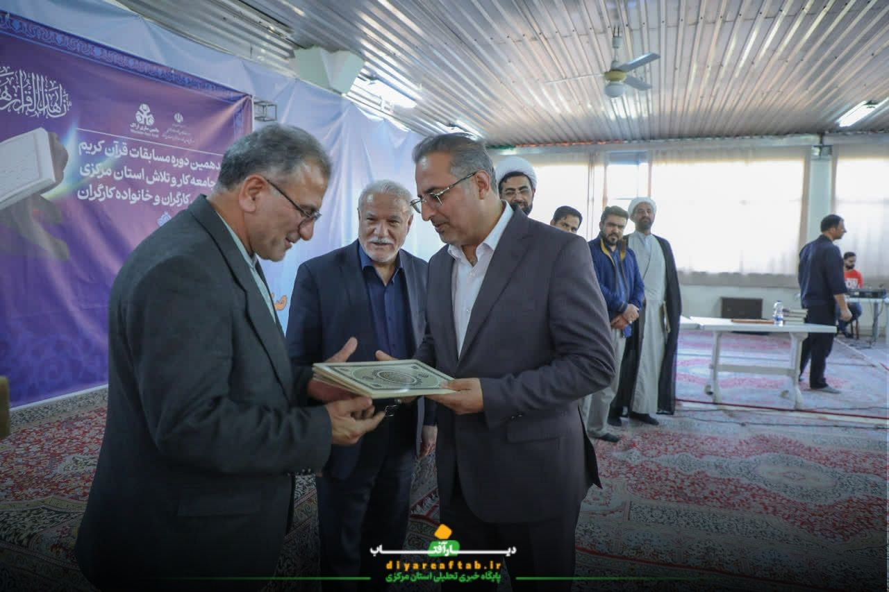 به گزارش خبرنگار گروه چند رسانه‌ای پایگاه خبری تحلیلی «دیار آفتاب» هفدهمین دوره مسابقات قرآن کریم ویژه جامعه کار و تلاش استان مرکزی با حضور مختار احمدی مدیرکل تعاون، کار و رفاه اجتماعی استان مرکزی، مدیران شرکت ماشین‌سازی اراک، مسئولان برگزاری مسابقات و جمعی از کارگران و خانواده‌های آنان همراه بود.